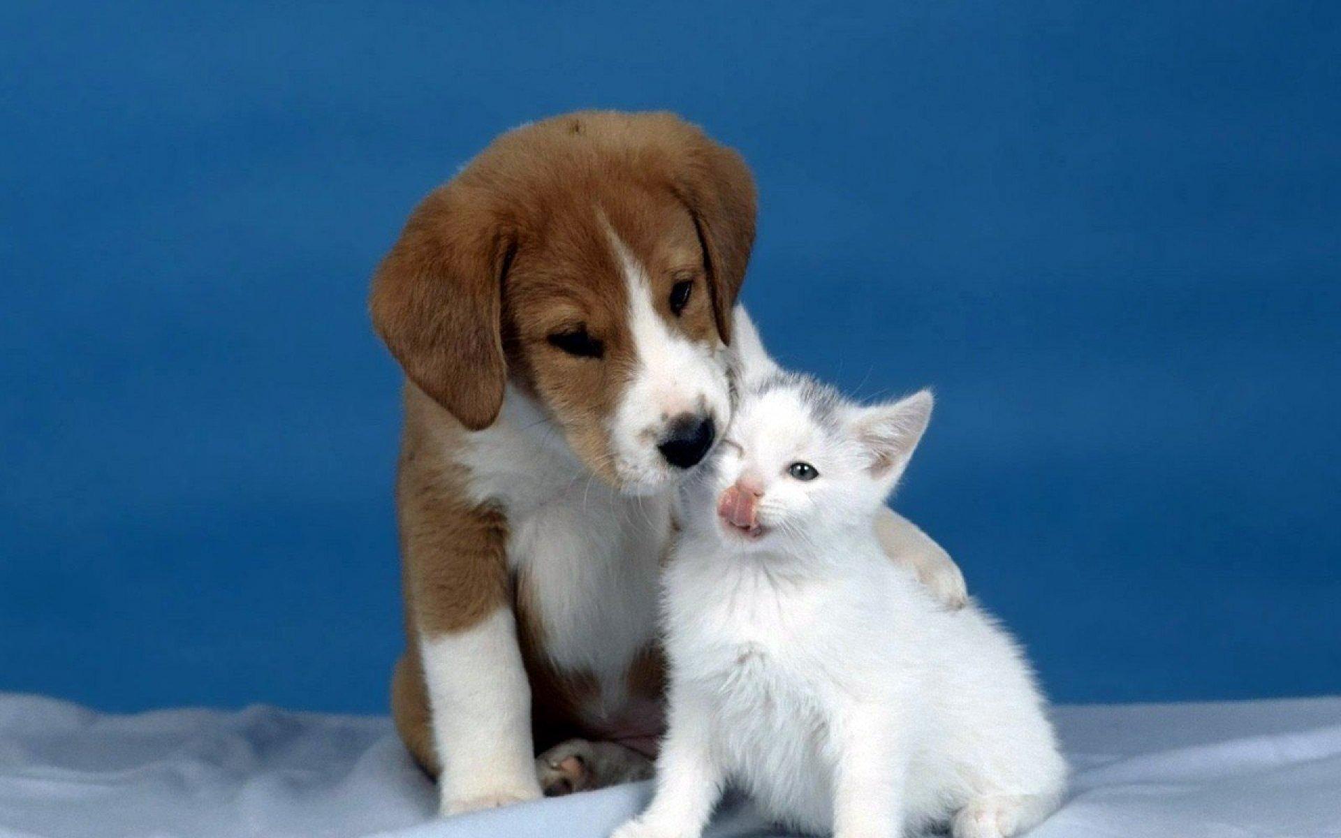 Котенок и щенок обои для рабочего стола, картинки, фото, 1920x1200. | ||||||||||||||