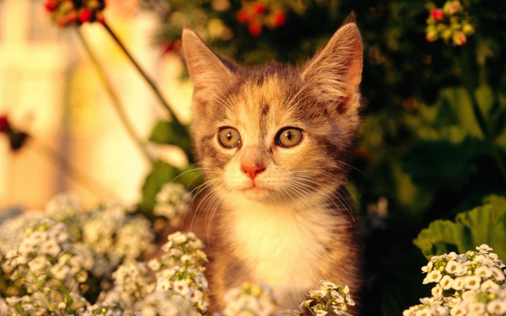 Котенок греется под вечерним солнцем обои для рабочего стола, картинки, фото, 1680x1050. | ||||||||||||||||