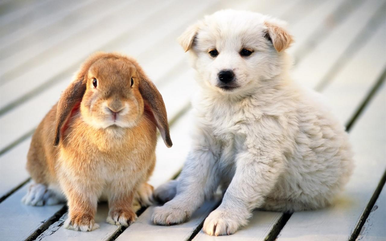 Кролик и щенок обои для рабочего стола, картинки, фото, 1280x800. | ||||||||||||||||