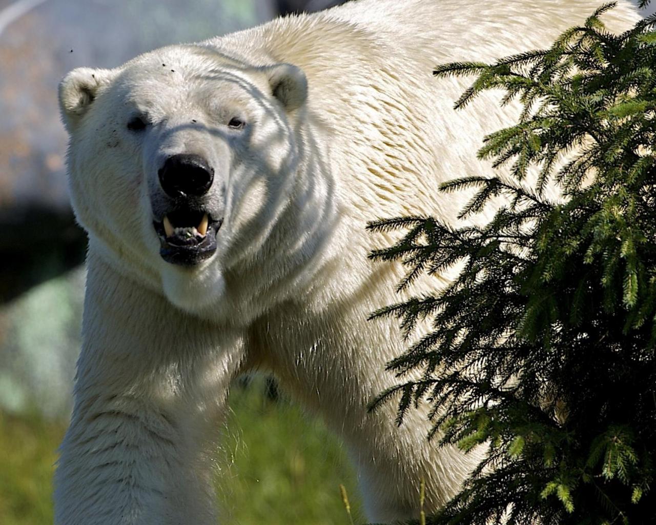 Белый медведь за елкой обои для рабочего стола, картинки, фото, 1280x1024. | ||||||||||||||||