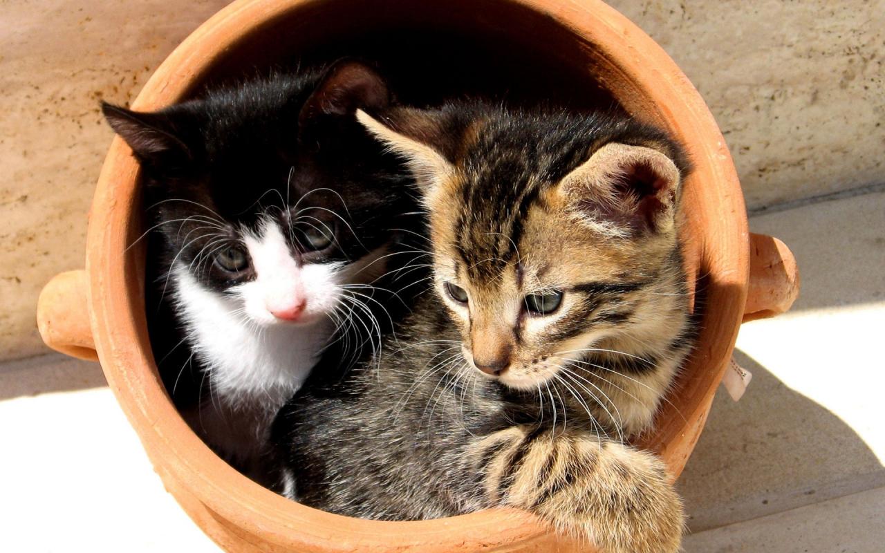 Котята, горшок обои для рабочего стола, картинки, фото, 1280x800. | ||||||||||||||