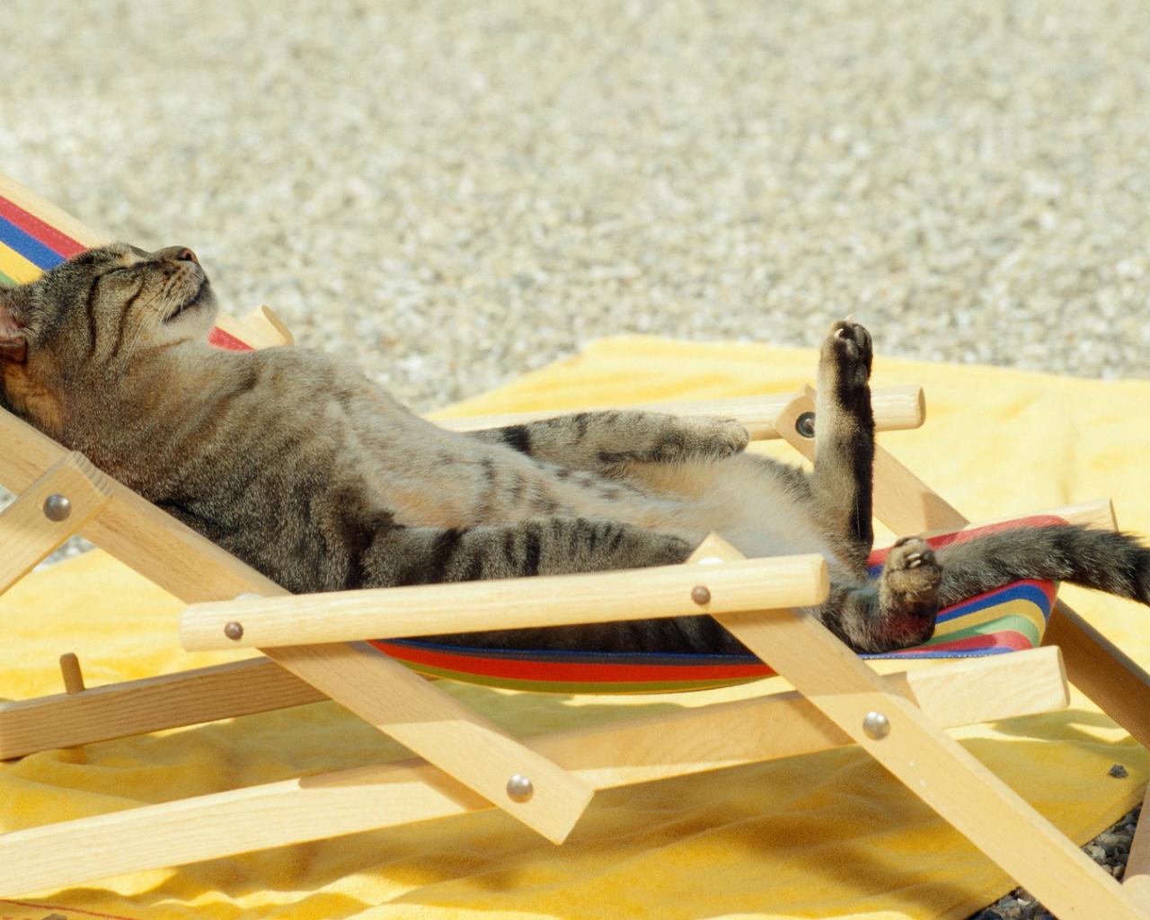 Кот, загар, пляж, лежак обои для рабочего стола, картинки, фото, 1280x1024. | ||||||||||||||||