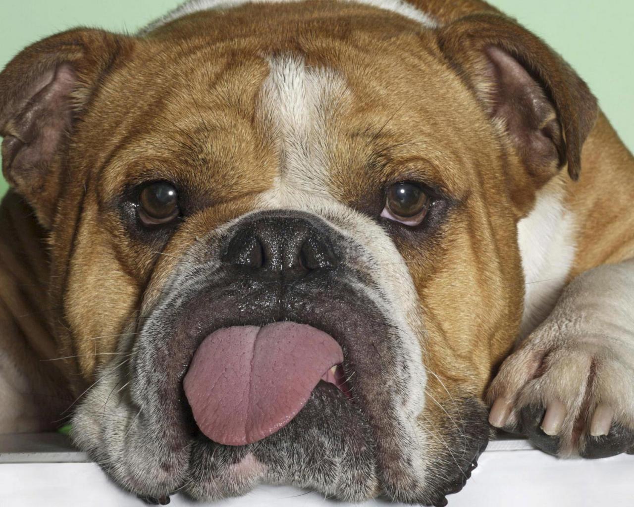Английский, бульдог, лежит, язык, устал обои для рабочего стола, картинки, фото, 1280x1024. | ||||||||||||||||