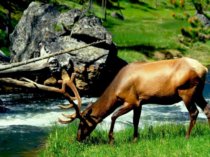 Олень кушает на лугу обои для рабочего стола, картинки, фото, 800x600. | ||||||||||||||||