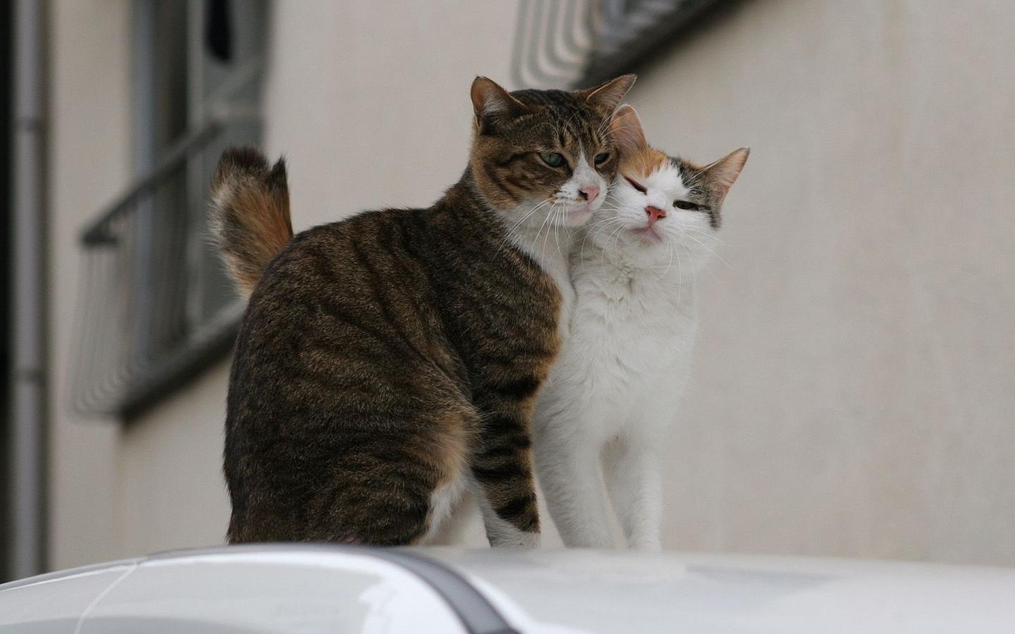 Кот и кошка трутся друг об друга обои для рабочего стола, картинки, фото, 1440x900. | ||||||||||||||||