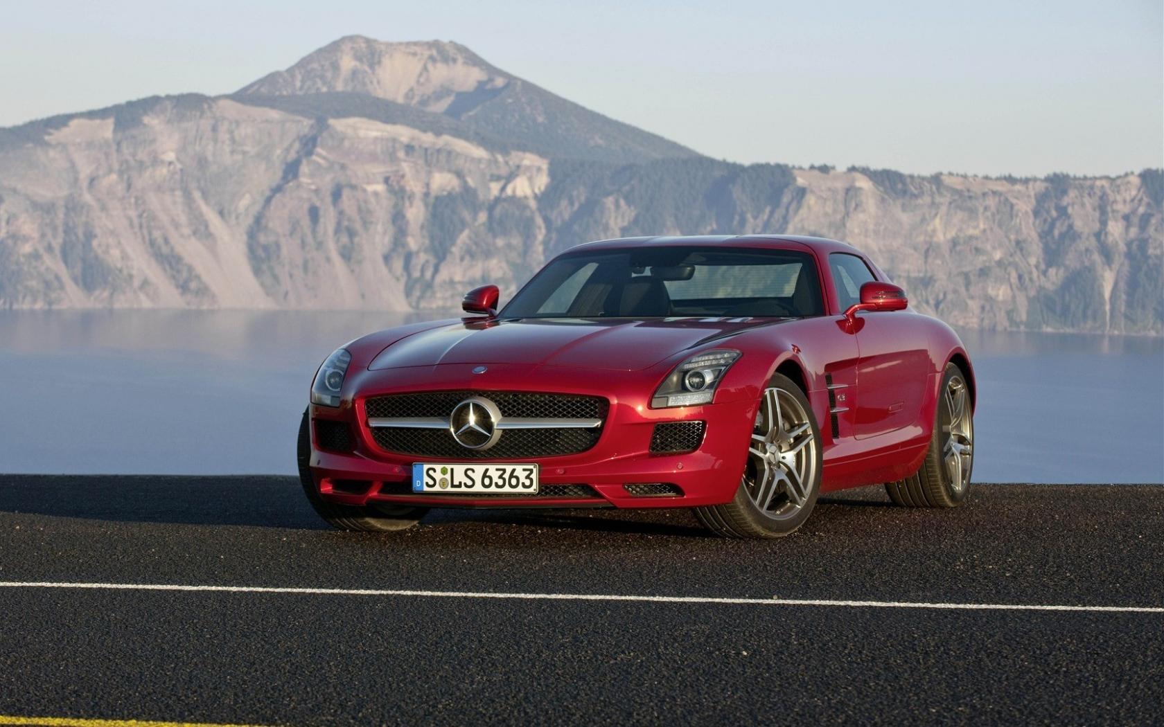 Автомобиль Mercedes-Benz SLS AMG красного цвета обои для рабочего стола, картинки, фото, 1680x1050. | ||||||||||||||||