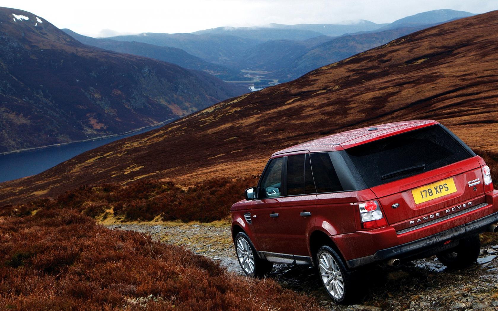 Красный Range Rover на горной дороге, вид сзади обои для рабочего стола, картинки, фото, 1680x1050. | ||||||||||||||||