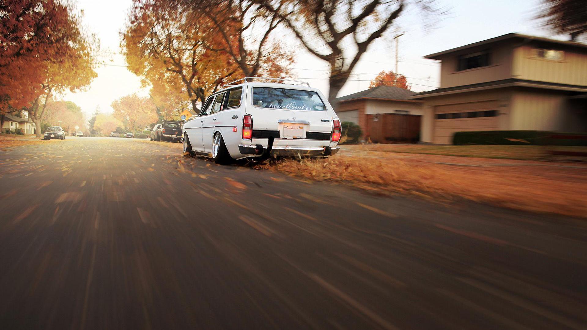 Дорога, листва, листья, ветер, скорость, солнце, небо, лучи, свет, универсал, белая тачка, тачка, ра обои для рабочего стола, картинки, фото, 1920x1080. | ||||||||||||||||
