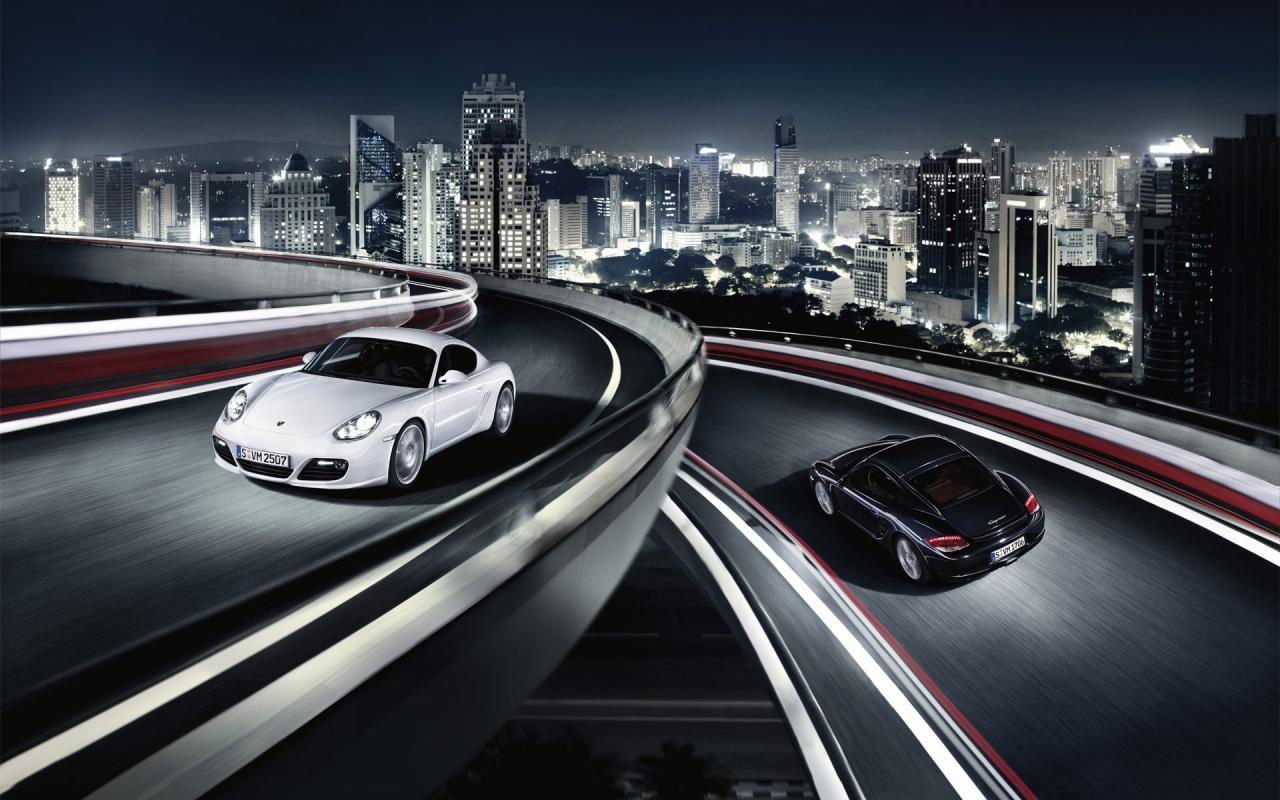 Черный и белый Porsche на автомагистрале. обои для рабочего стола, картинки, фото, 1280x800. | ||||||||||||||||||||||