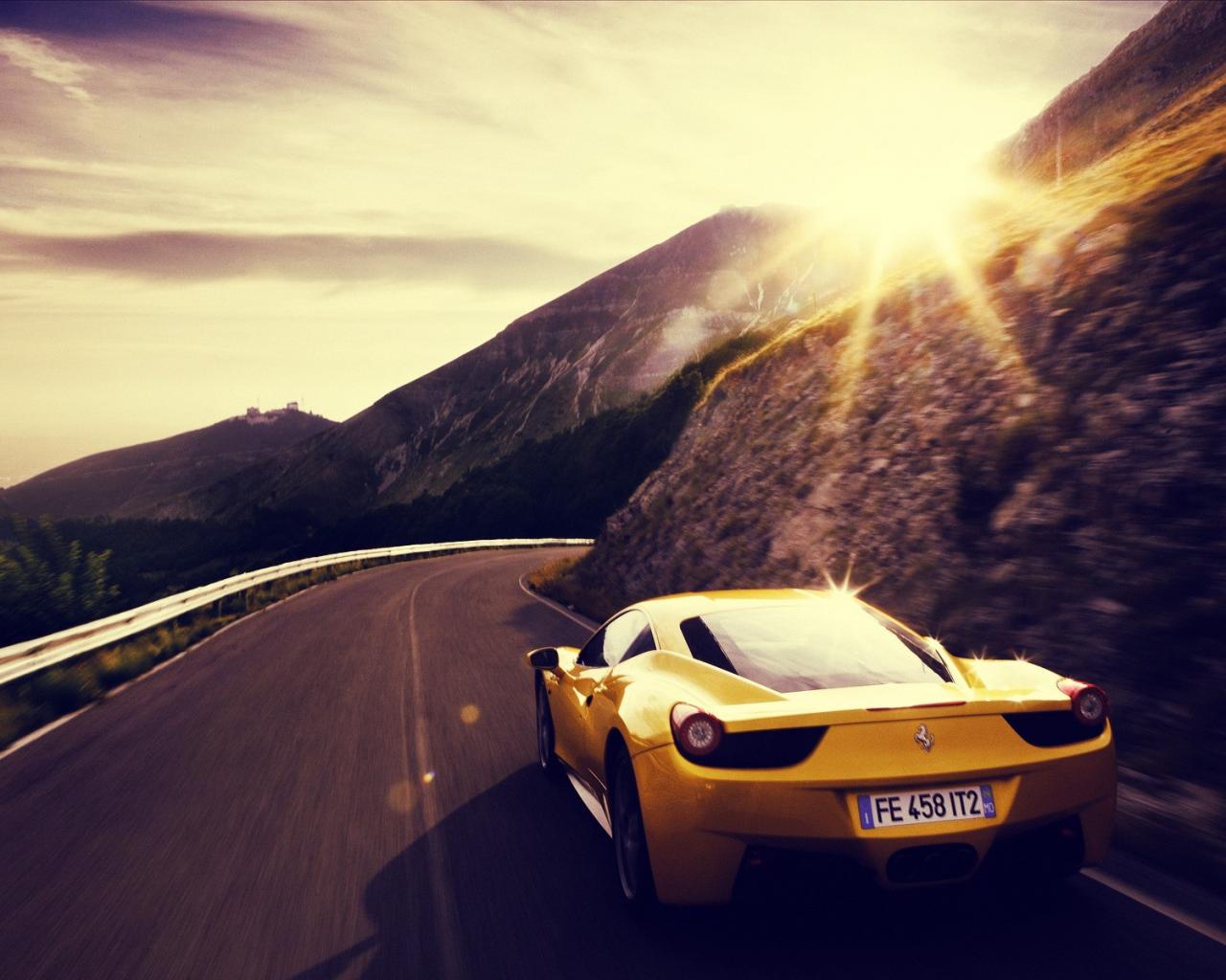 Желтый феррари на трассе обои для рабочего стола, картинки, фото, 1280x1024. | ||||||||||||||||