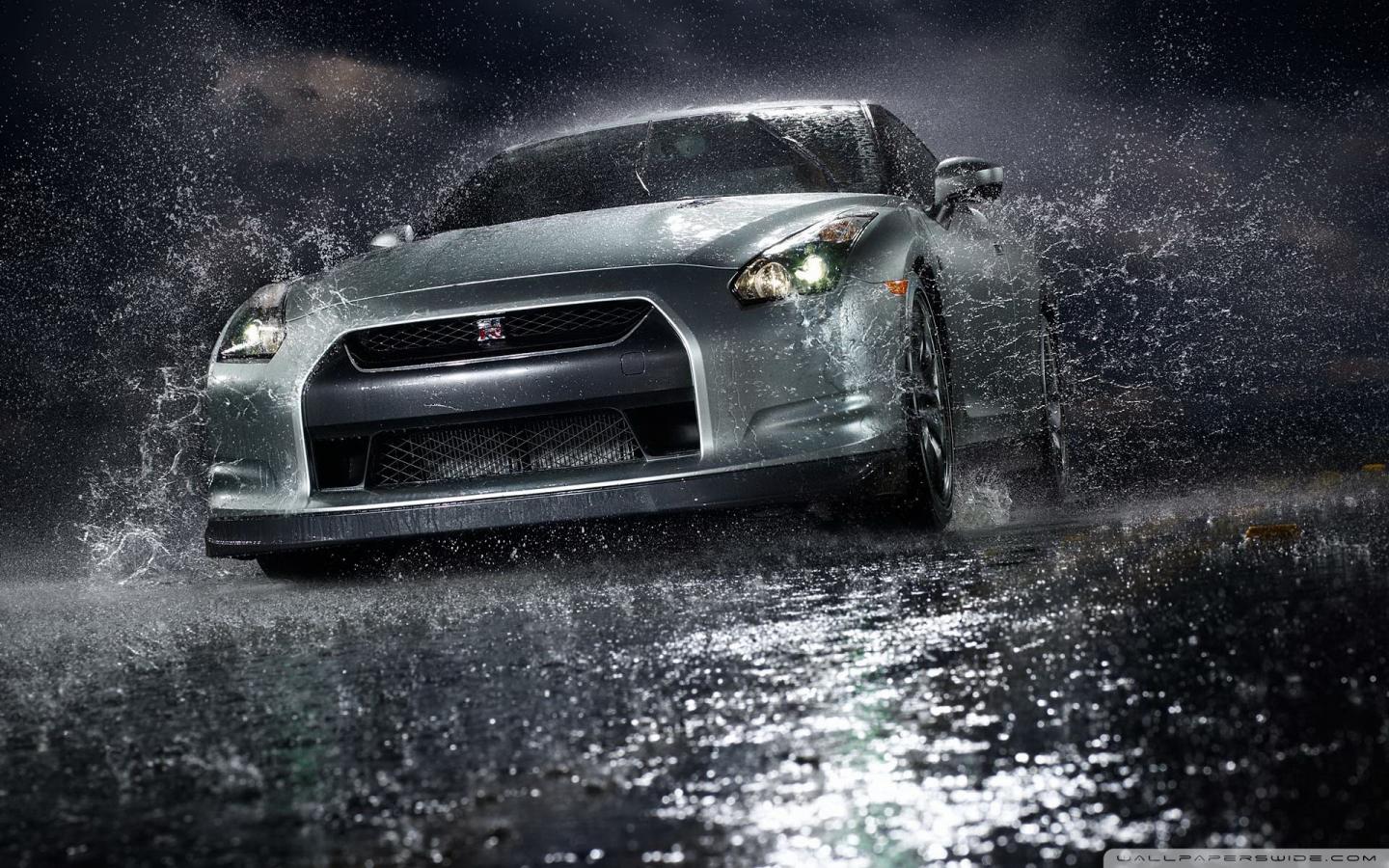Nissan GTR под дождем обои для рабочего стола, картинки, фото, 1440x900. | ||||||||||||||||