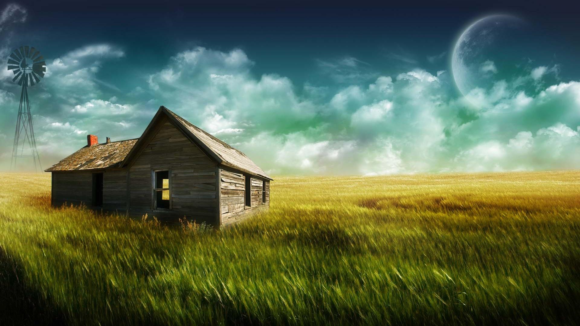 Домик в поле обои для рабочего стола, картинки, фото, 1920x1080. | ||||||||||||||