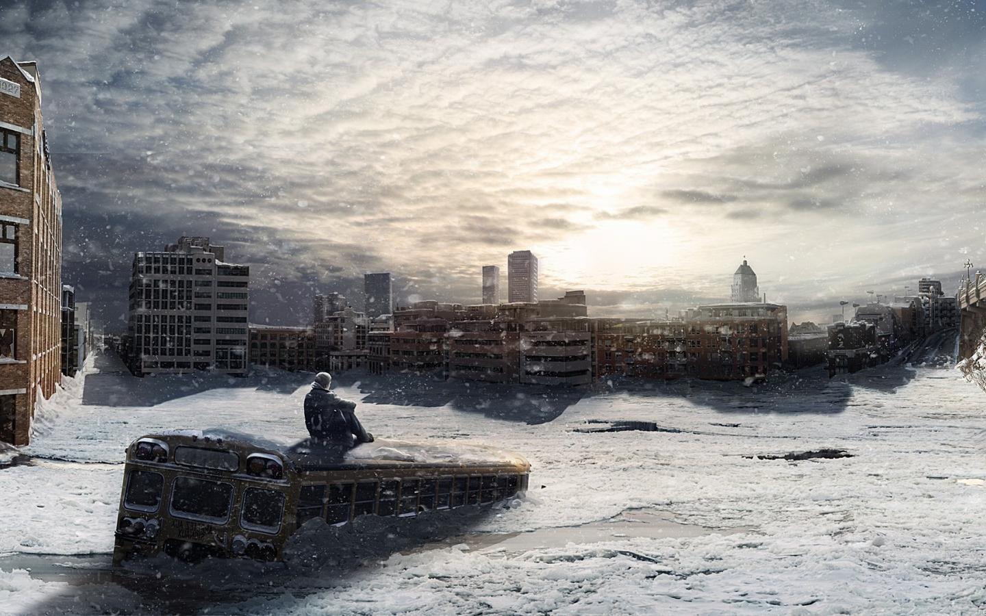 Город, зима, человек обои для рабочего стола, картинки, фото, 1440x900. | ||||||||||||||||