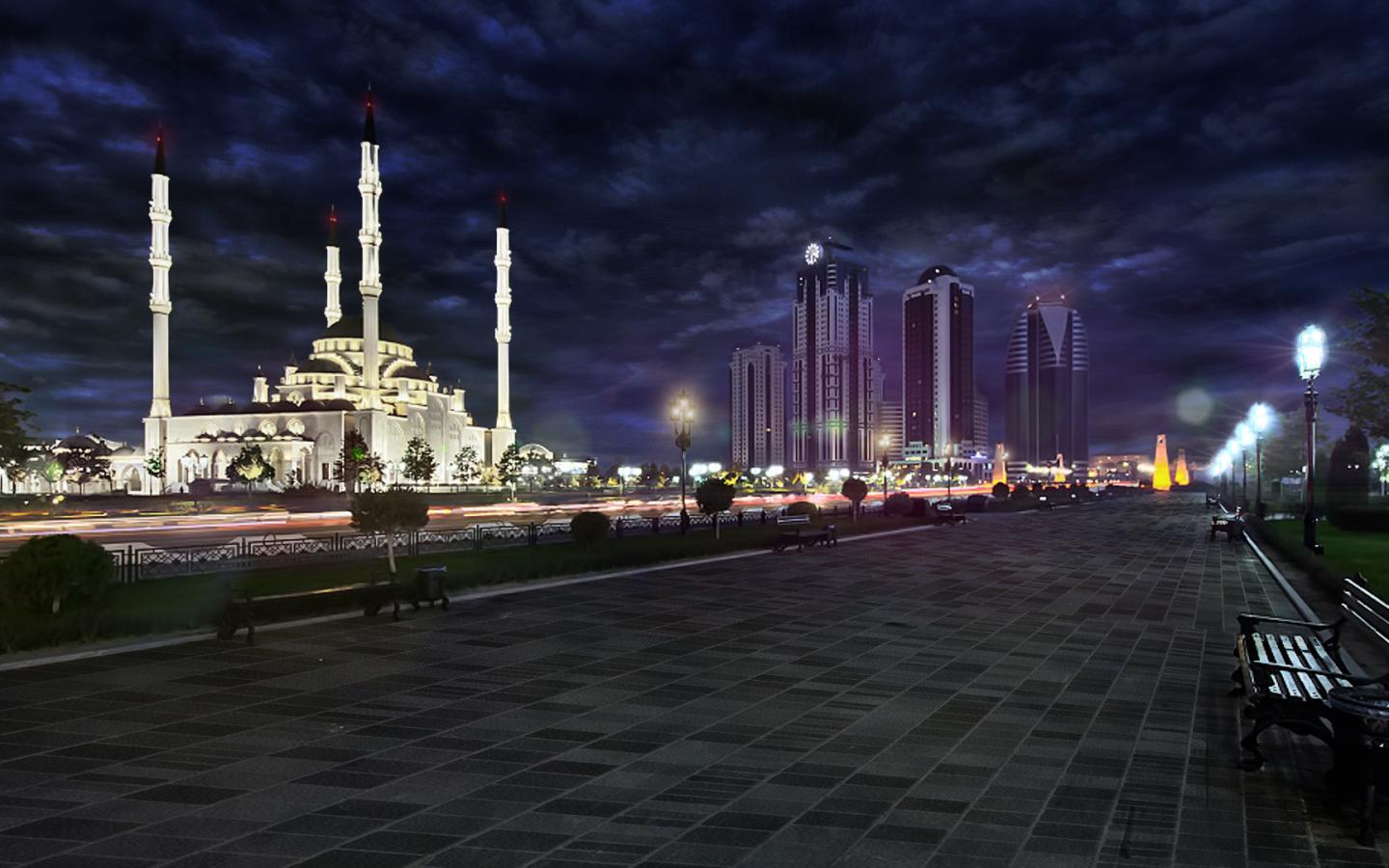 Вечер, фонари, бульвар обои для рабочего стола, картинки, фото, 1440x900. | ||||||||||||||||