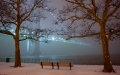Парк, скамейки, деревья, мост, огни, снег, вечер, туман обои для рабочего стола, картинки, фото, 1680x1050. | ||||||||||||||||