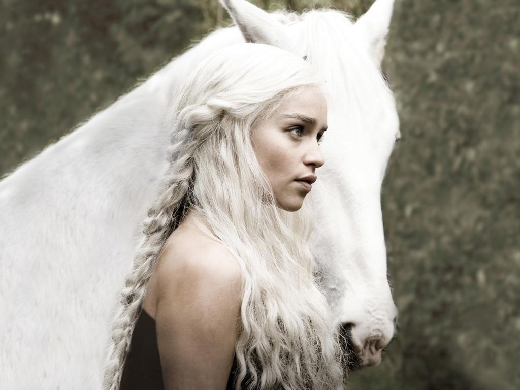 Эмили Кларк с белой лошадью, в е Игра Пристолов обои для рабочего стола, картинки, фото, 1024x768. | ||||||||||||||||||||||