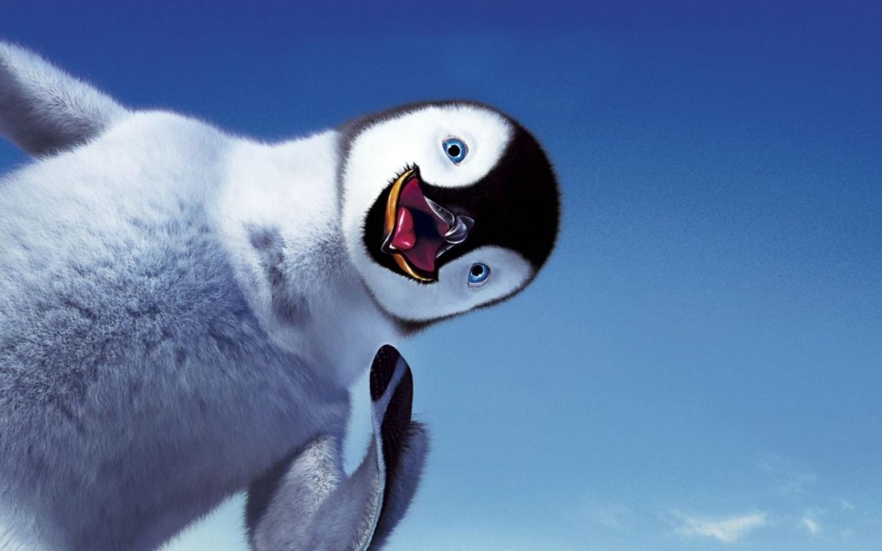 Пингвин, улыбка, небо, делай ноги обои для рабочего стола, картинки, фото, 1280x800. | ||||||||||||||||