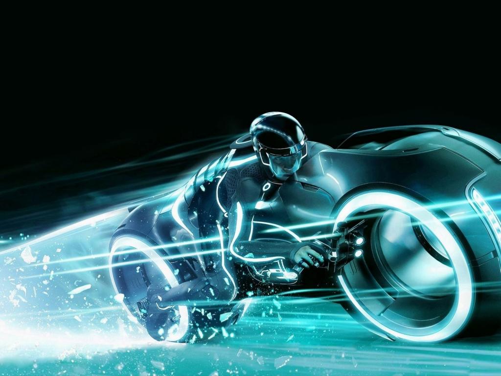 Фантастика, tron, неон, мотоцикл, движение, лучи обои для рабочего стола, картинки, фото, 1024x768. | ||||||||||||||||