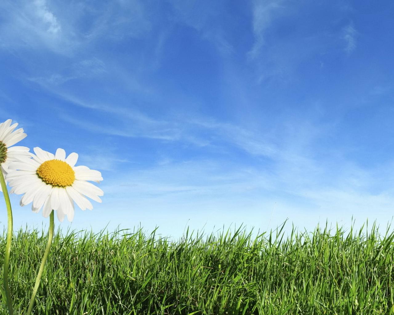 Ромашки, поле, зелёная, трава, горизонт, небо, облака обои для рабочего стола, картинки, фото, 1280x1024. | ||||||||||||||||