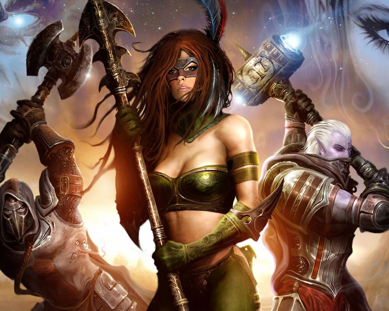 Воюющая троица во главе с амазонкой - скачать обои для рабочего стола, картинки, фото, 1280x1024. | ||||||||||||||||