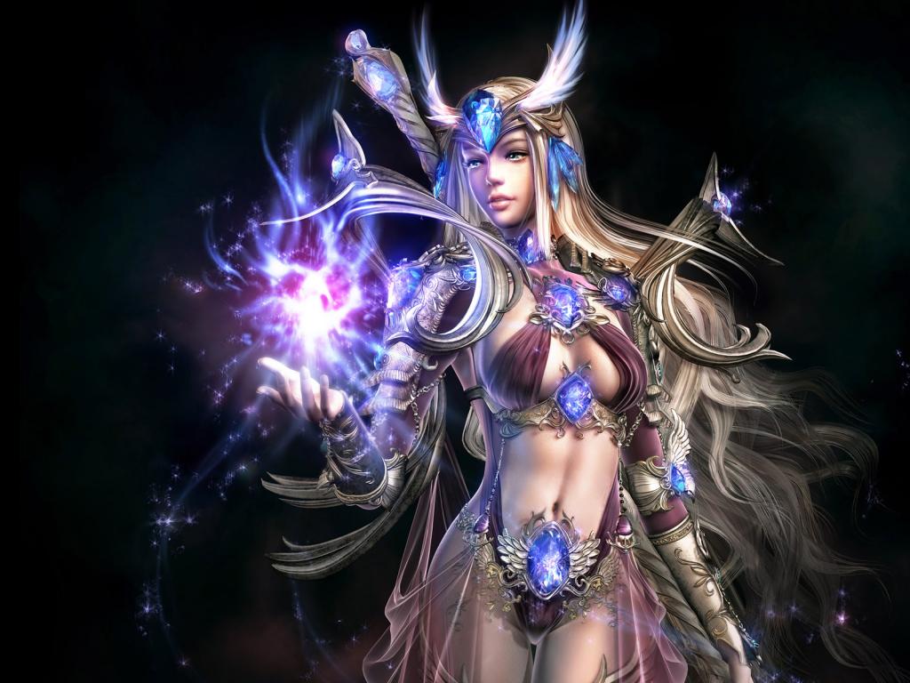 Игра, девушка, фэнтези, воин, магия, свечение, волосы обои для рабочего стола, картинки, фото, 1024x768. | ||||||||||||||||||||||