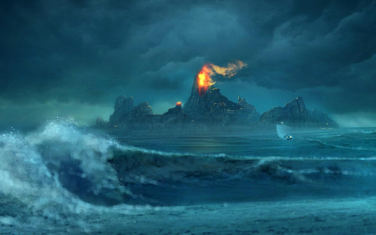 Скалы, вулкан, море, лодка обои для рабочего стола, картинки, фото, 1280x800. | ||||||||||||||||