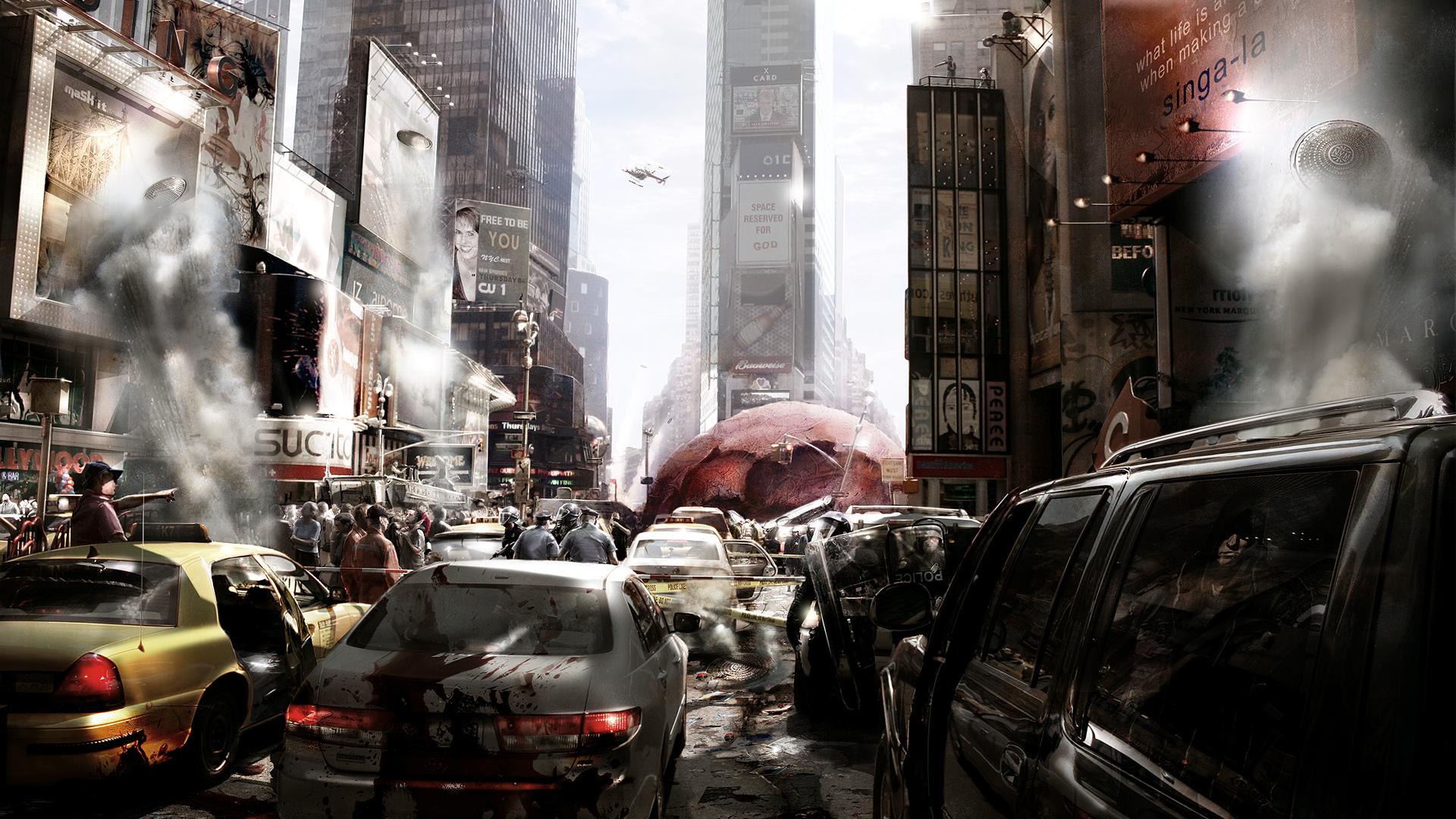 Город, хаос, вирус, эпидемия, люди, машины, нью-йорк обои для рабочего стола, картинки, фото, 1920x1080. | ||||||||||||||||