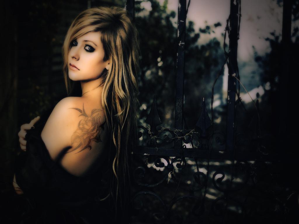 Avril Lavigne, тату, забор, деревья обои для рабочего стола, картинки, фото, 1024x768. | ||||||||||||||||