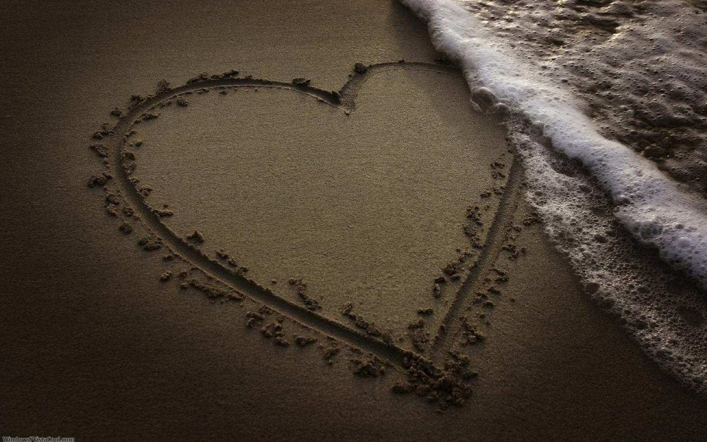 Сердце на песке обои для рабочего стола, картинки, фото, 1440x900. | ||||||||||||||