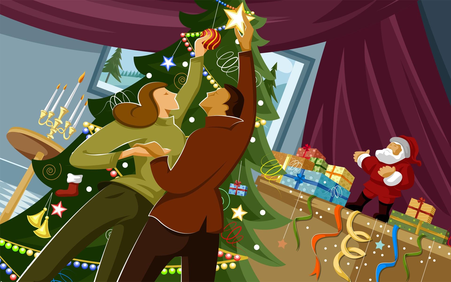 Пара украшает елку обои для рабочего стола, картинки, фото, 1920x1200. | ||||||||||||||||