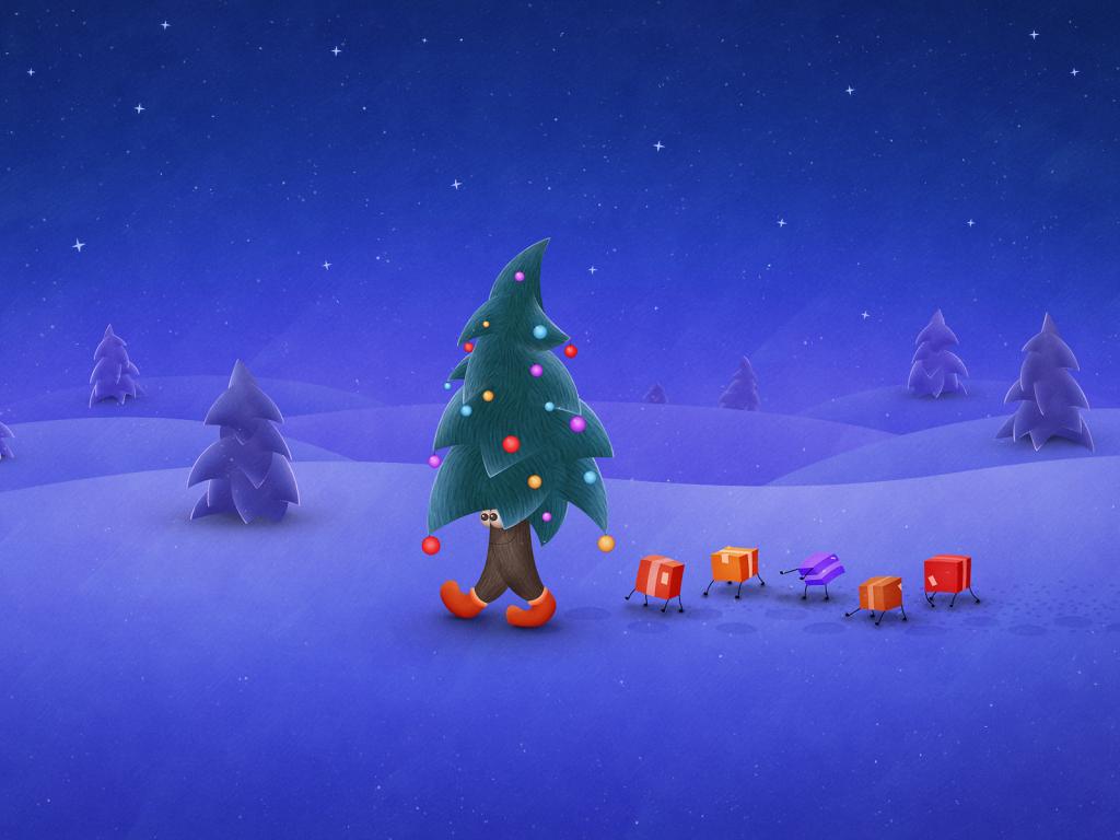 Зима, праздник, елка, подарки, снег, ночь обои для рабочего стола, картинки, фото, 1024x768. | ||||||||||||||||