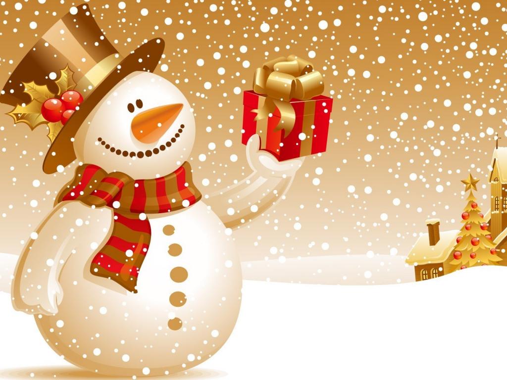 Новый год, снеговик, снег, зима, подарок обои для рабочего стола, картинки, фото, 1024x768. | ||||||||||||||||