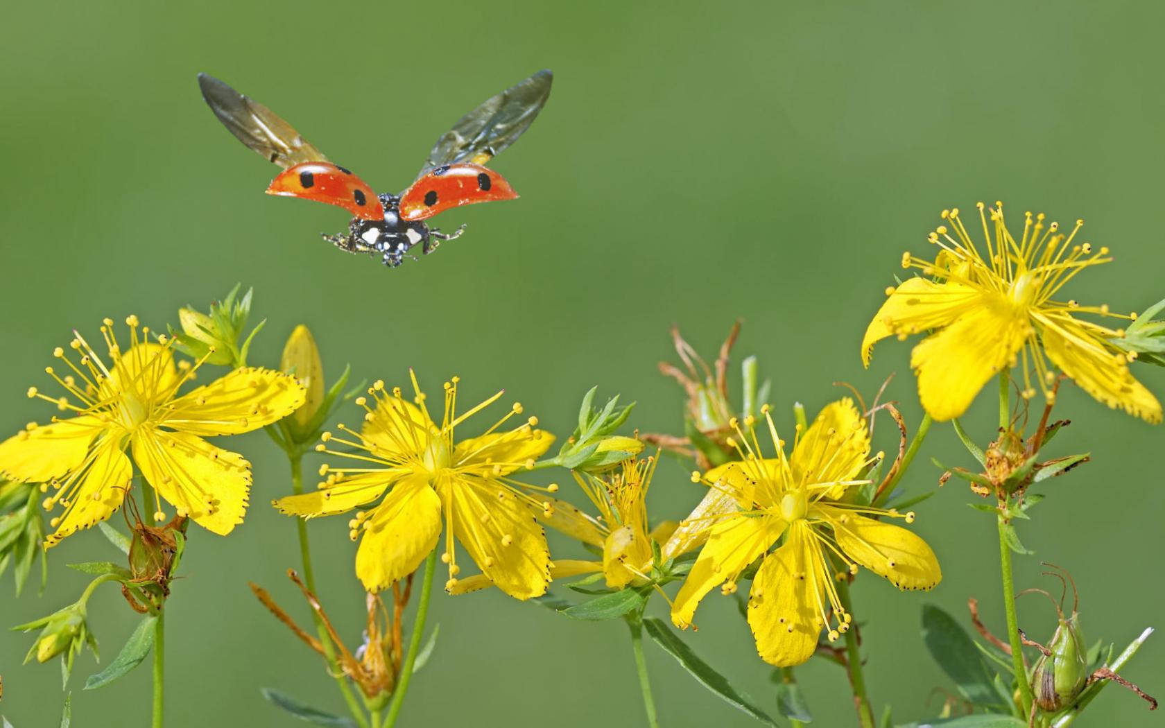 Жёлтые, цветы, полёт, божья, коровка, крылья обои для рабочего стола, картинки, фото, 1680x1050. | ||||||||||||||||