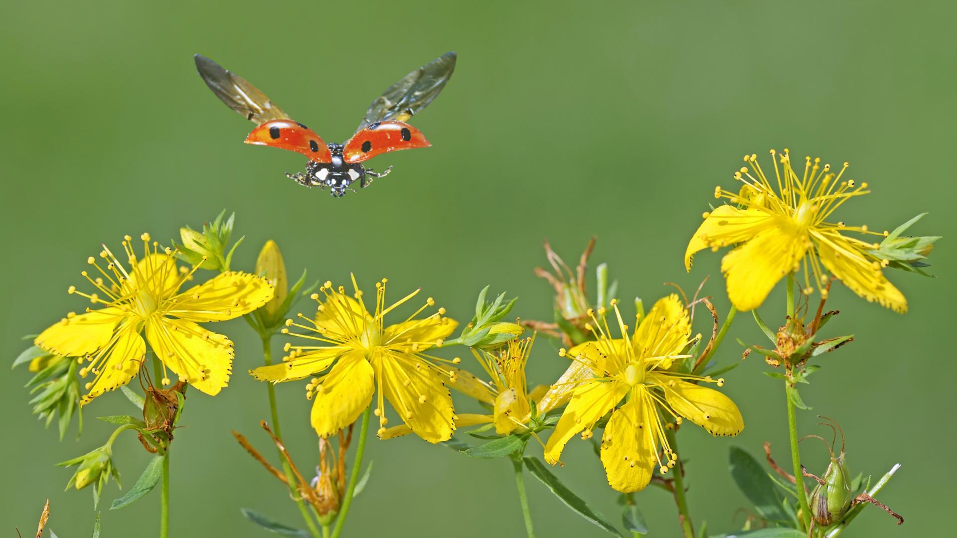 Жёлтые, цветы, полёт, божья, коровка, крылья обои для рабочего стола, картинки, фото, 1920x1080. | ||||||||||||||||||||||