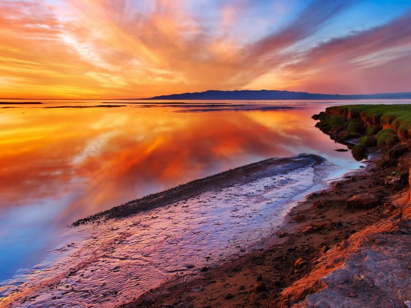 Яркий закат над водой обои для рабочего стола, картинки, фото, 800x600. | ||||||||||||||||