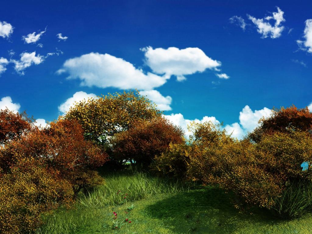 Голубое небо, белые облака и деревья - скачать обои для рабочего стола, картинки, фото, 1024x768. | |||||||||||||||||||||||