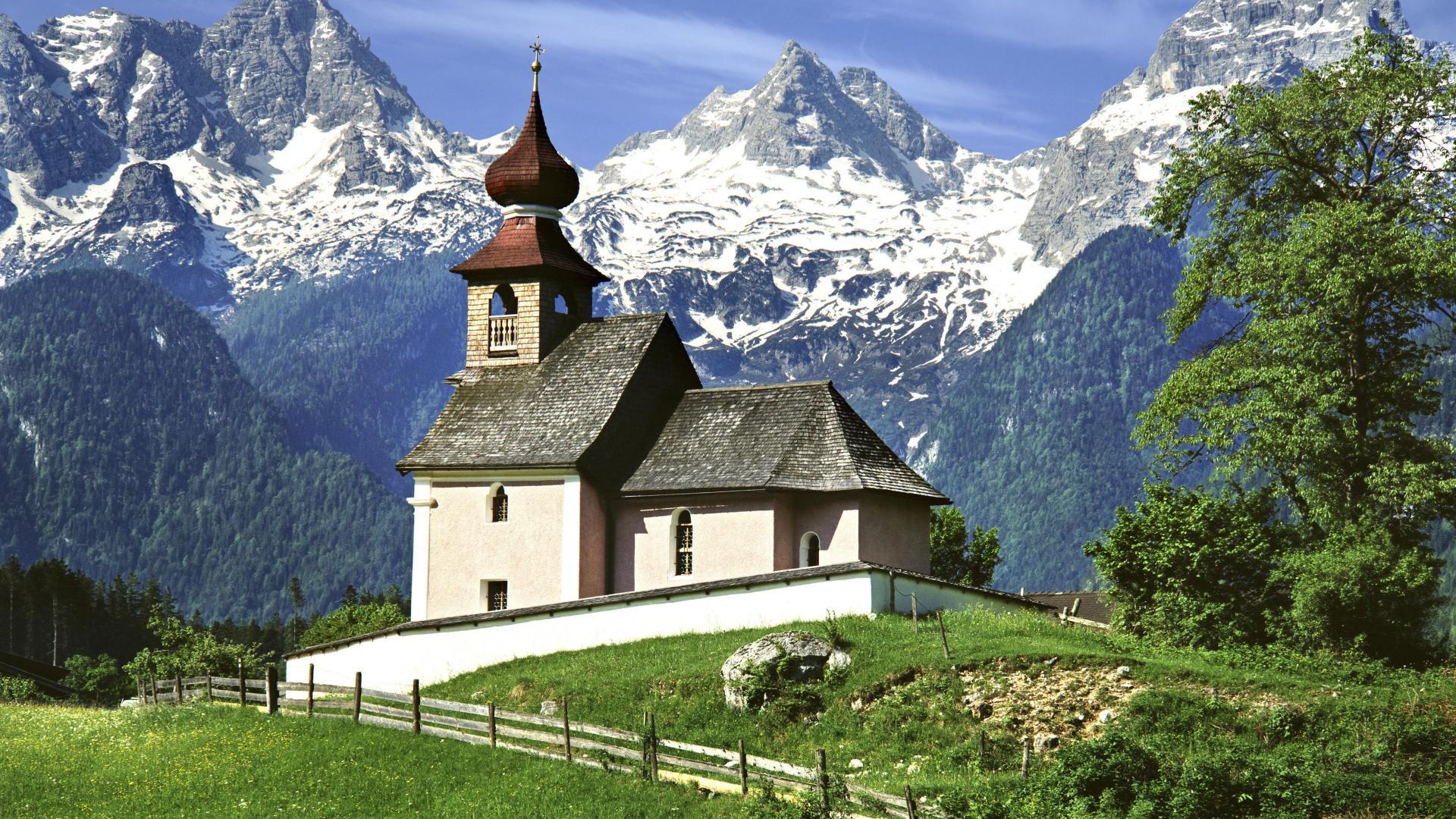 Церковь в горах Австрии обои для рабочего стола, картинки, фото, 1920x1080. | ||||||||||||||||