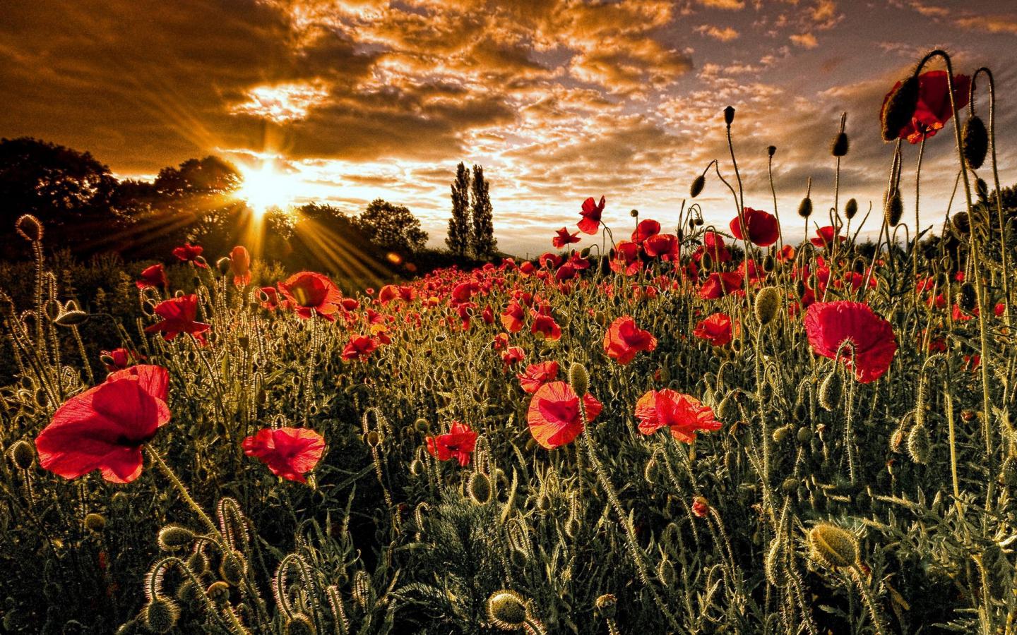 Маковое поле на закате обои для рабочего стола, картинки, фото, 1440x900. | ||||||||||||||||