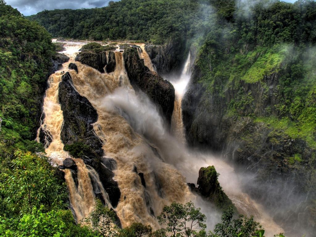 Река, водопад, туман, деревья обои для рабочего стола, картинки, фото, 1024x768. | ||||||||||||||||