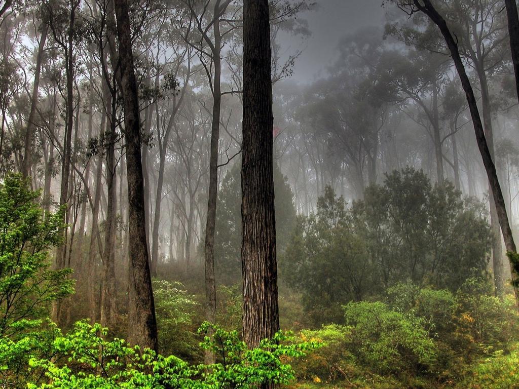Лес, деревья, стволы, туман обои для рабочего стола, картинки, фото, 1024x768. | ||||||||||||||||