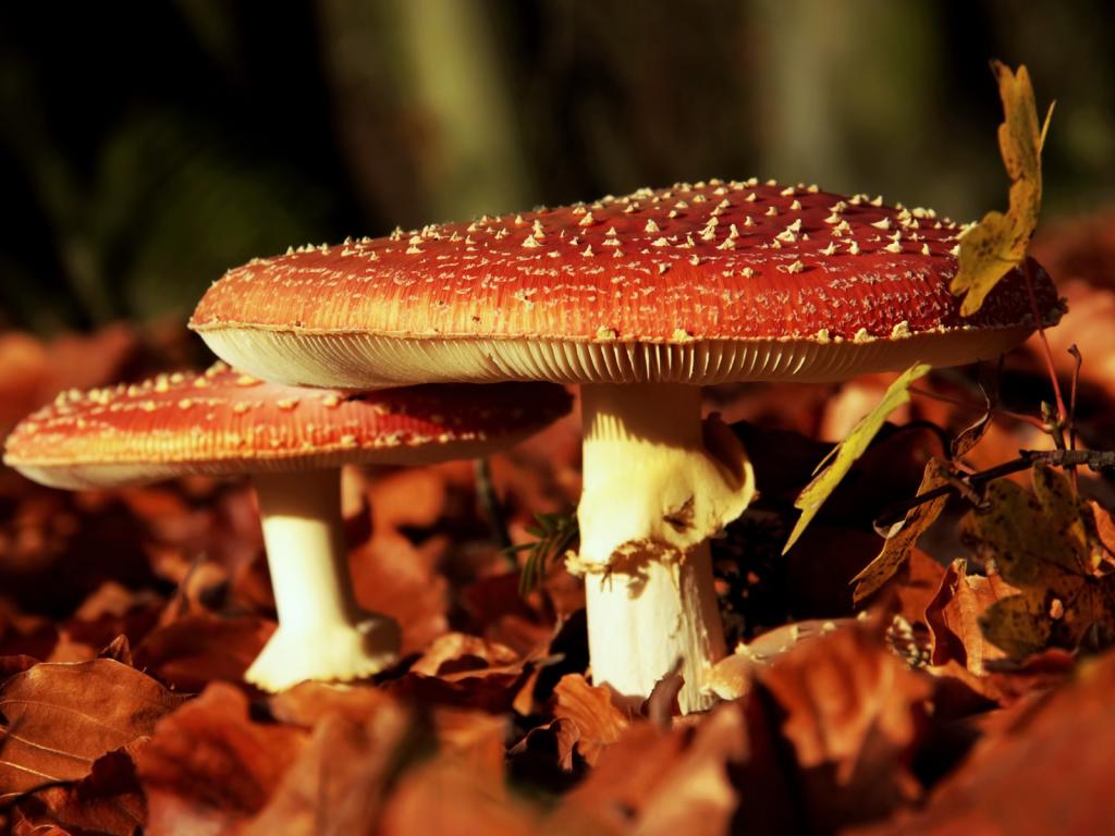 Грибы, мухоморы, листья обои для рабочего стола, картинки, фото, 1024x768. | ||||||||||||||||