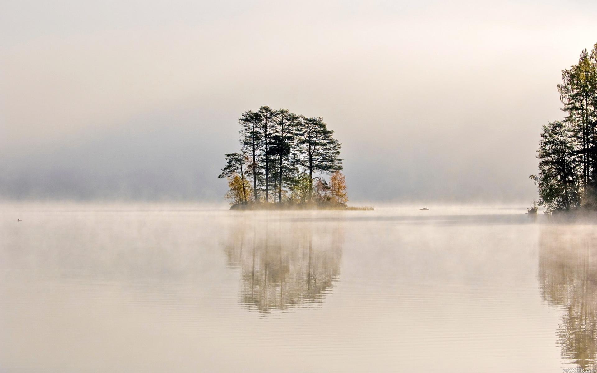 Озеро, туман, остров, природа обои для рабочего стола, картинки, фото, 1920x1200. | ||||||||||||||||
