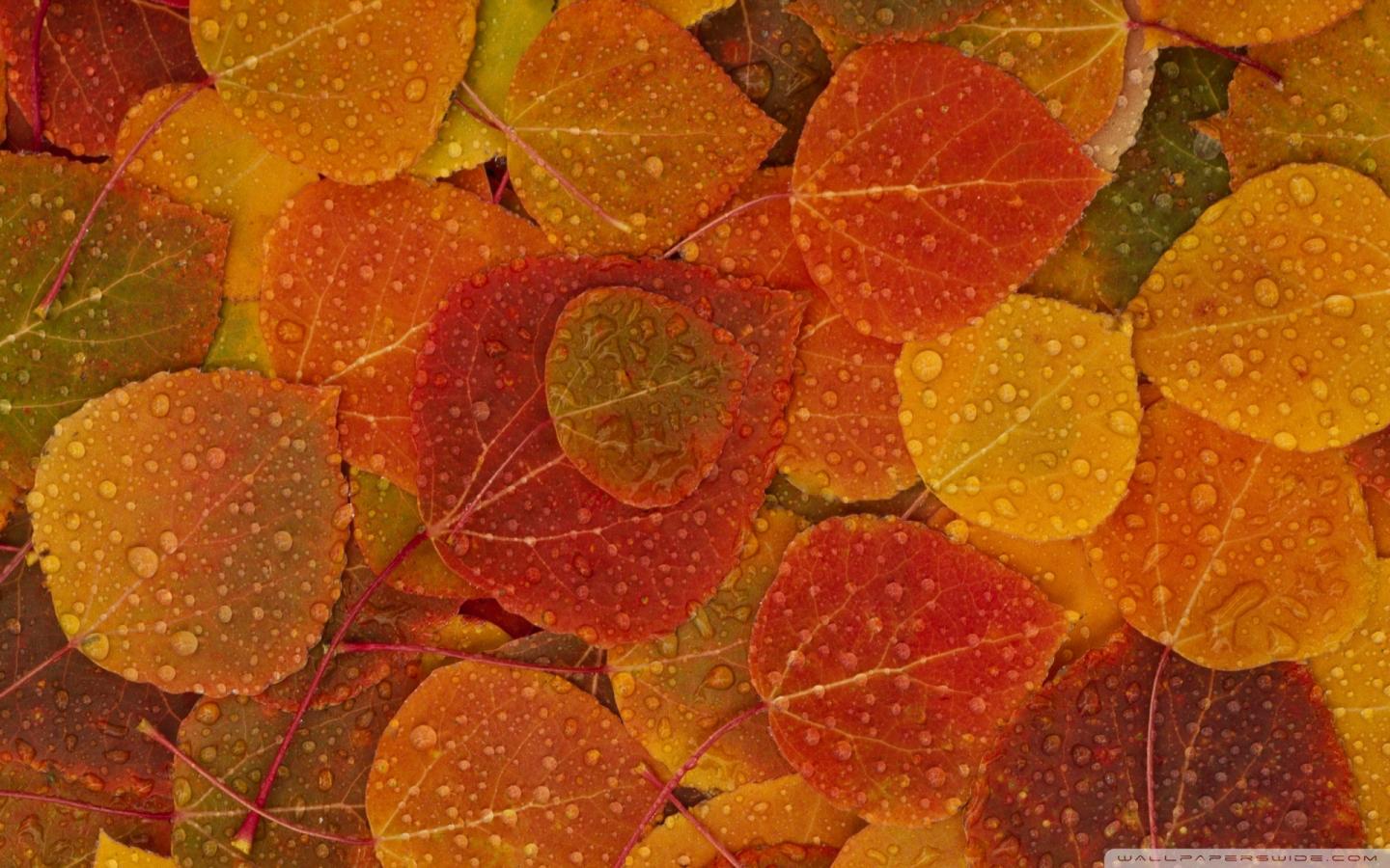 Осенние листья в каплях дождя обои для рабочего стола, картинки, фото, 1440x900. | |||||||||||||||||||||||