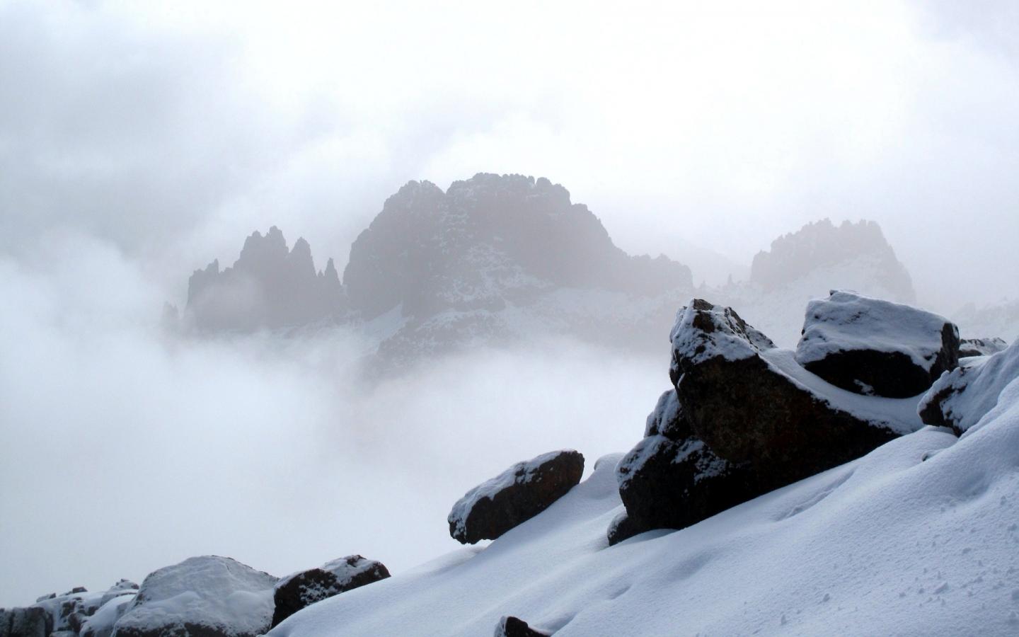 Горы, снег, вершины, облака обои для рабочего стола, картинки, фото, 1440x900. | ||||||||||||||||
