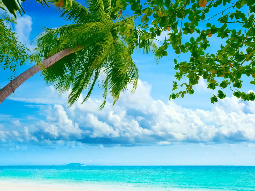 Райский уголок, пальма, океан обои для рабочего стола, картинки, фото, 1024x768. | ||||||||||||||||