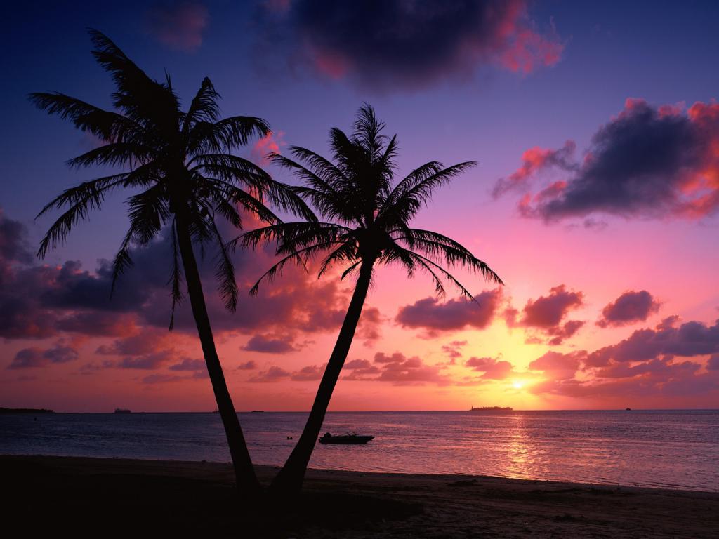 Пейзажи, пляж, побережье, пальмы, вечер, закат, море, облака обои для рабочего стола, картинки, фото, 1024x768. | |||||||||||||||||||||||