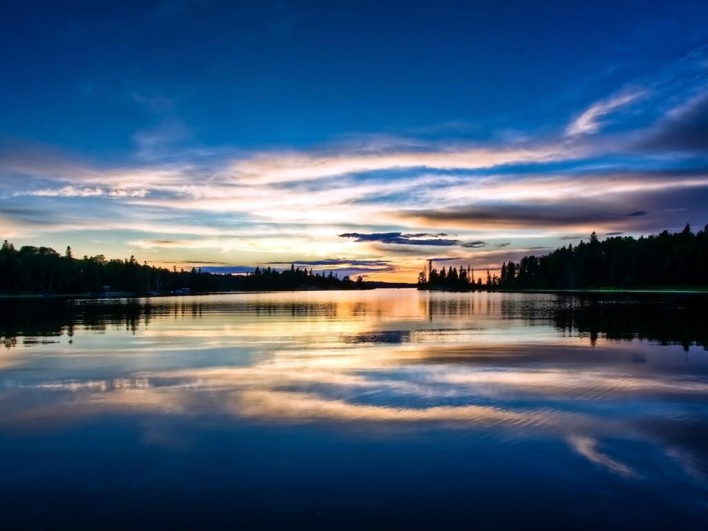 Небо, облака, вечер, отражение, вода обои для рабочего стола, картинки, фото, 1024x768. | ||||||||||||||||