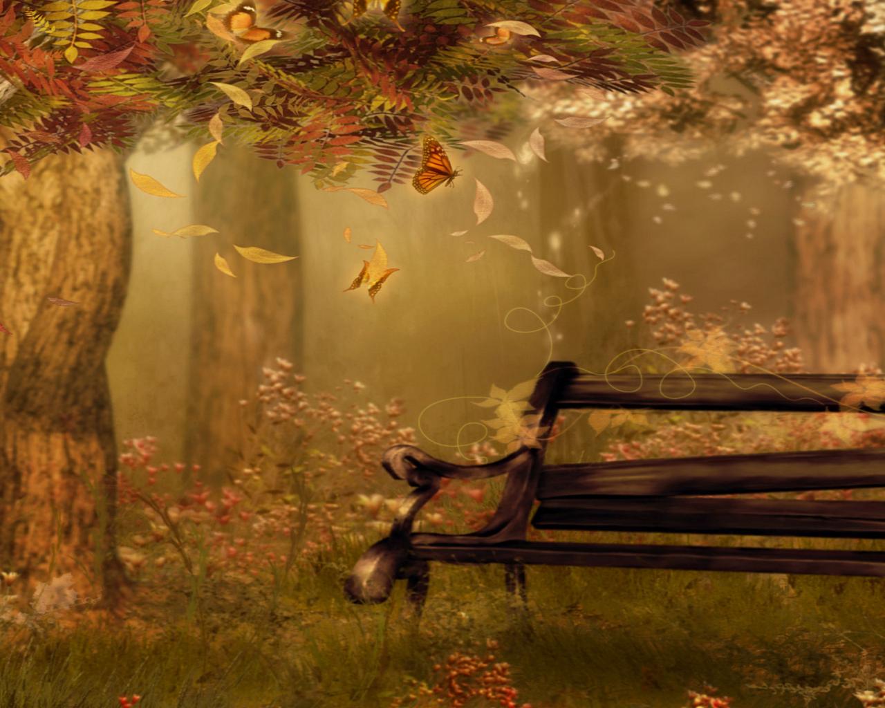 Природа, осень, скамейка, бабочка, деревья, листья обои для рабочего стола, картинки, фото, 1280x1024. | ||||||||||||||||||||||