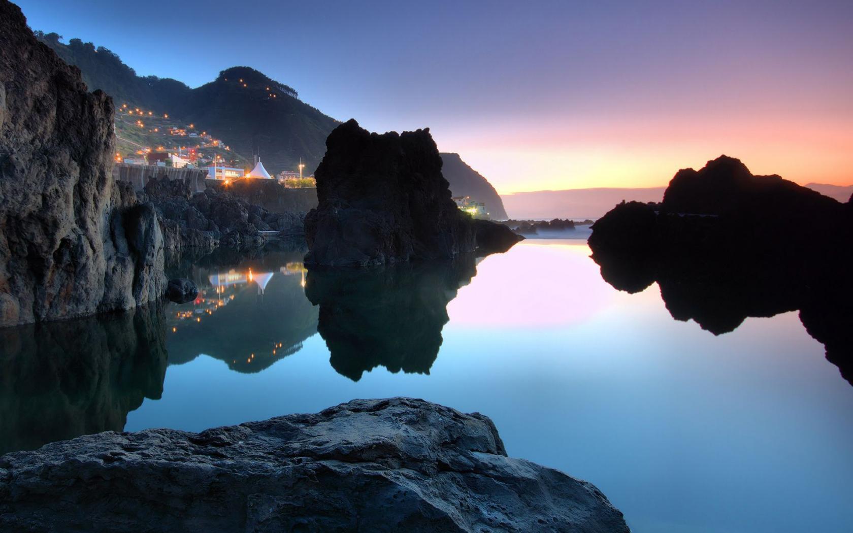 Вечер в морской гавани обои для рабочего стола, картинки, фото, 1680x1050. | ||||||||||||||||