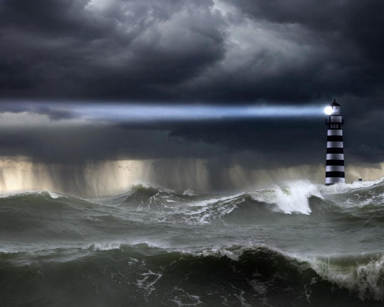 Океан, шторм, волны, небо, тучи, дождь, ливень, маяк, луч, свет, стихия обои для рабочего стола, картинки, фото, 1280x1024. | ||||||||||||||||||||||